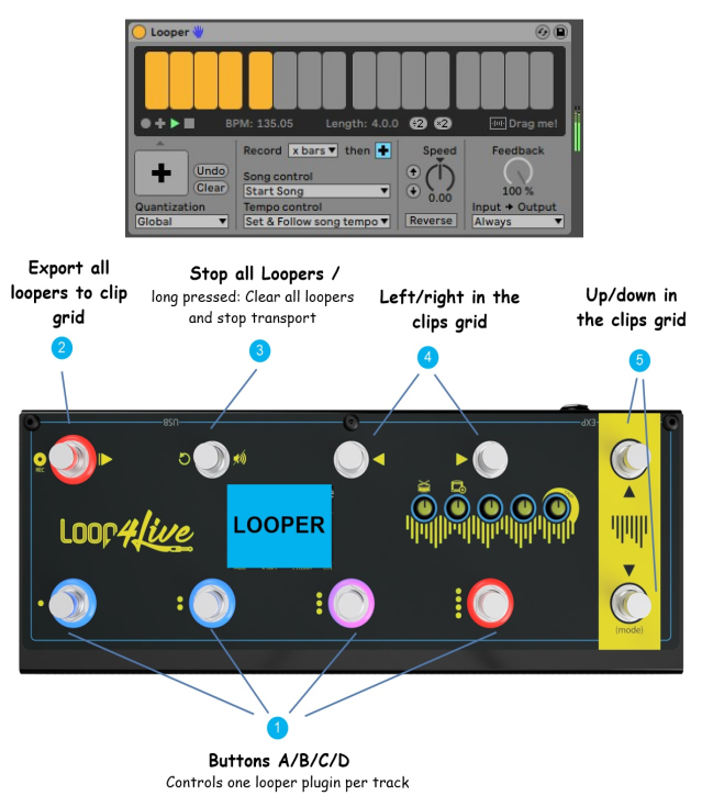 Loop4Live now allows you to control Ableton's looper plugin via the pedalboard's free mode.